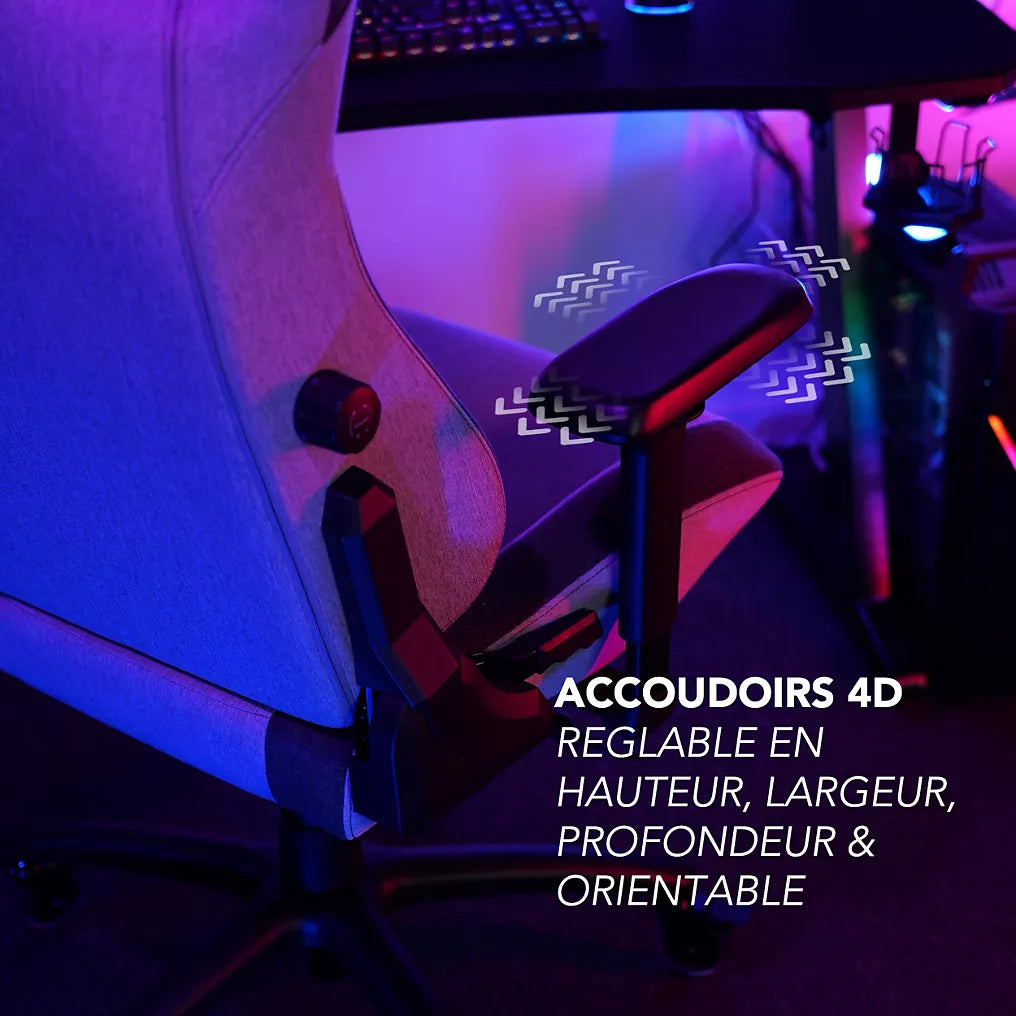 • Avantages : Sa forme baquet et ses roues rollers permettent de jouer sur n'importe quel support de sol sans l'abimer. Les roues roller se verrouillent grâce à des freins afin de permettre de jouer à des jeux de sim racing sans effet de recul.
