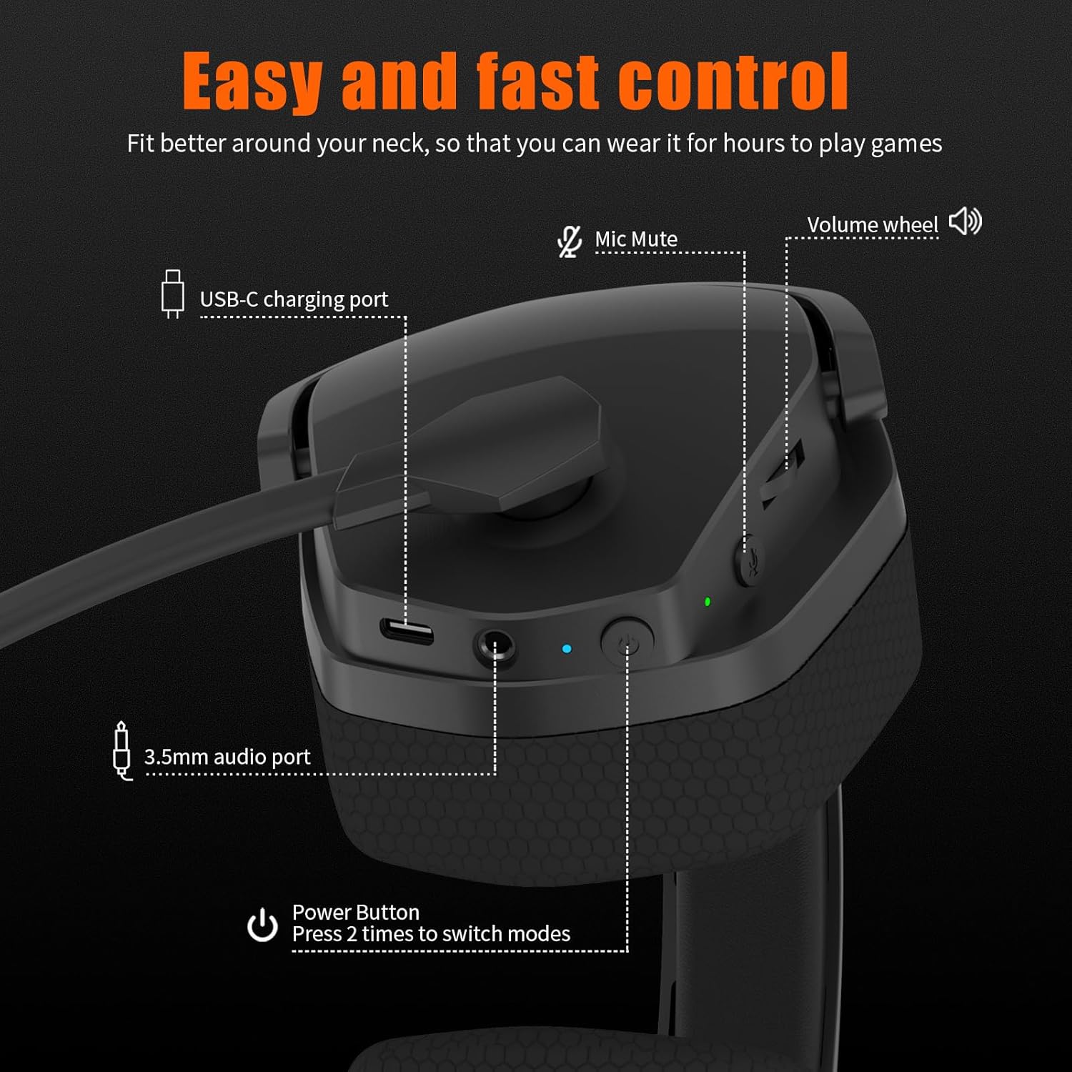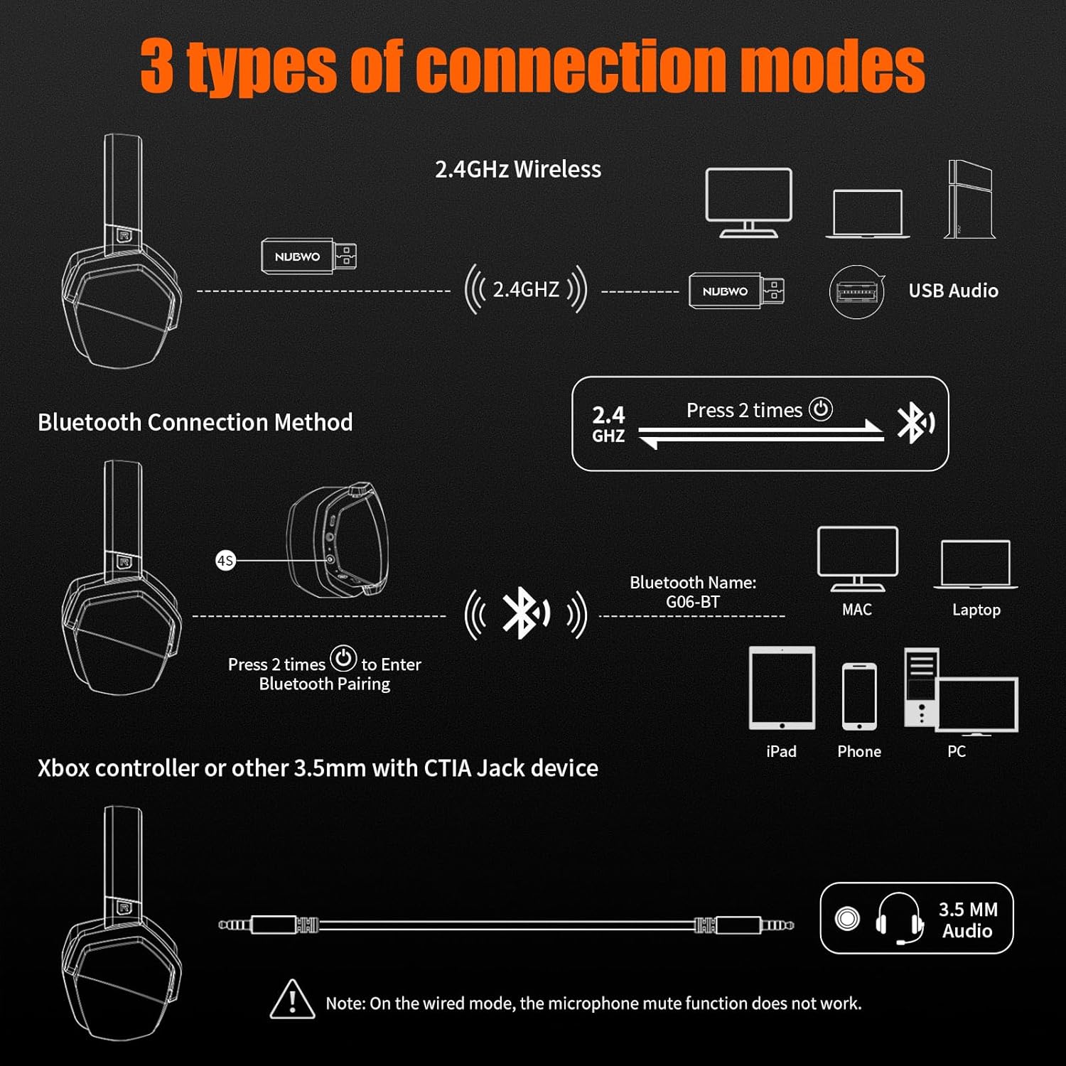 NUBWO G06 Double Casque Gaming sans Fil avec Microphone pour PS5, PC